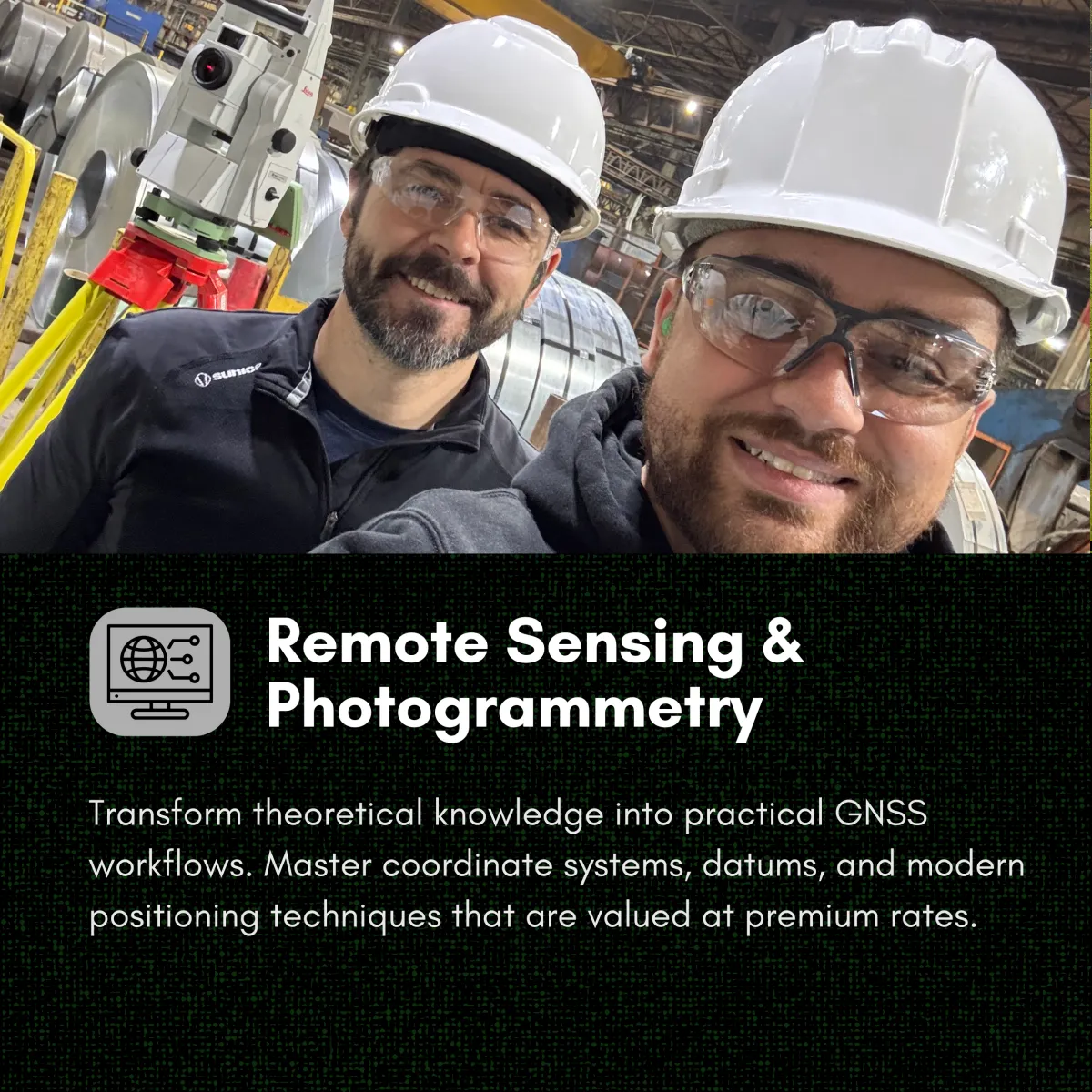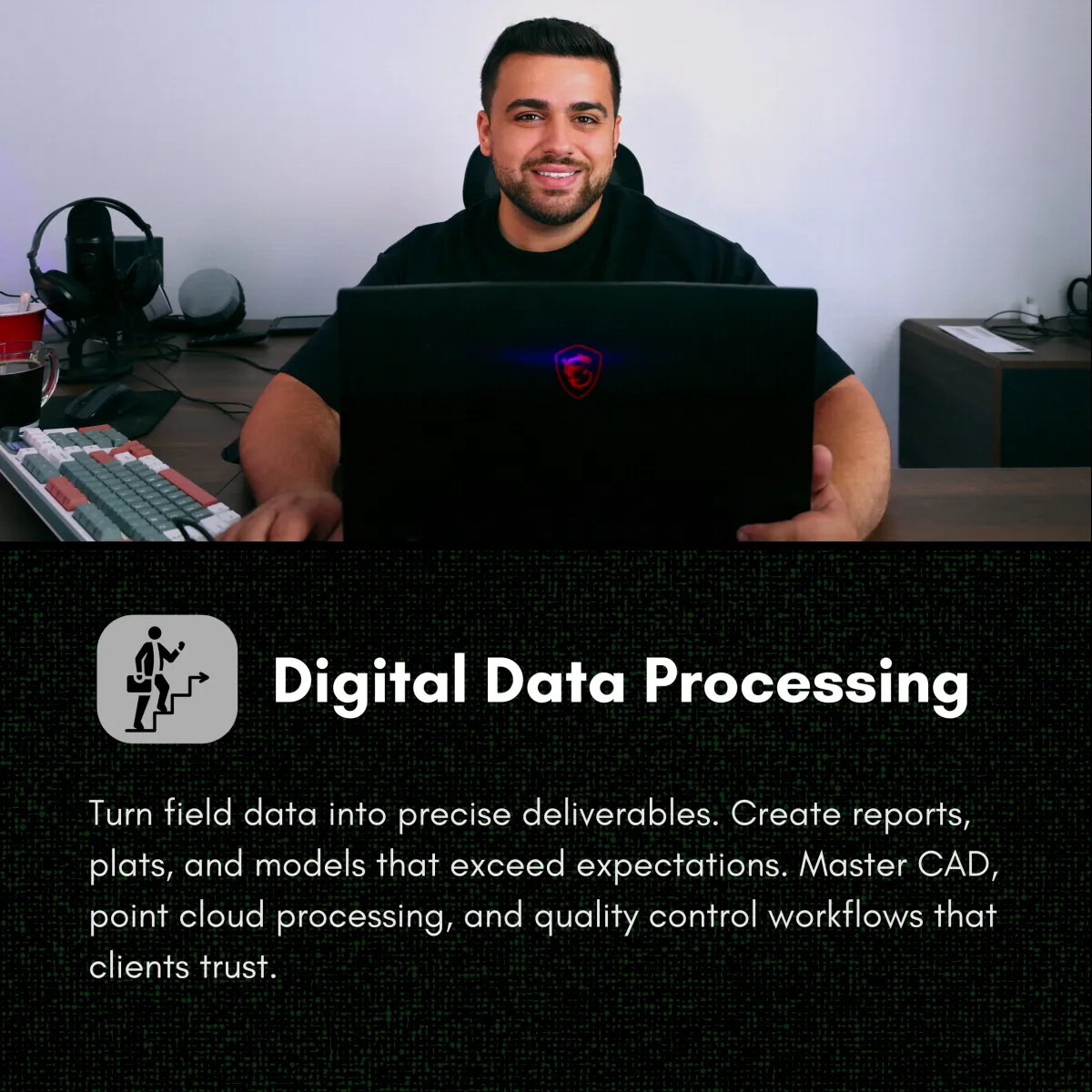 We teach people with ZERO experience. This is a mentoring program, and you're here to learn from us! Just follow our step-by-step lessons and guidance, and you'll be creating professional deliverables. Even if it's your first time touching survey equipment.